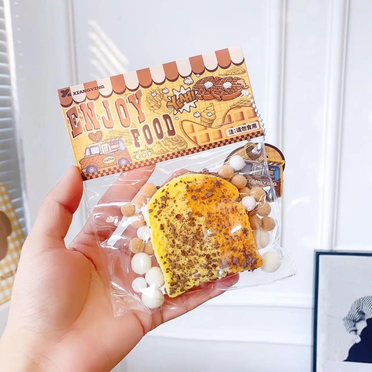 This waffle-shaped decompression toy has a highly realistic appearance and realistic texture, as if it had just been taken out of the oven. Made of environmentally friendly materials, safe and non-toxic, suitable for use by all ages. The toys have exquisite details and clever decorations and embellishments, adding visual and tactile enjoyment.