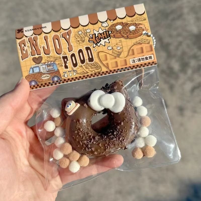 Designed in the shape of a realistic donut, it is full of fun and creativity. The donut is covered with pink icing and colorful sprinkles, and the top is decorated with a cute pink decoration. The details are exquisite, just like a real dessert. Made of environmentally friendly and non-toxic materials, it is safe and reliable. Its soft texture and unique touch can effectively relieve stress and anxiety. Whether it is used as a home decoration or a decompression artifact, this toy can add a sweetness and relaxation to your life. It is very suitable for giving to friends, family or colleagues to bring them a pleasant experience. Material: Safety grade silicone Weight: 100g